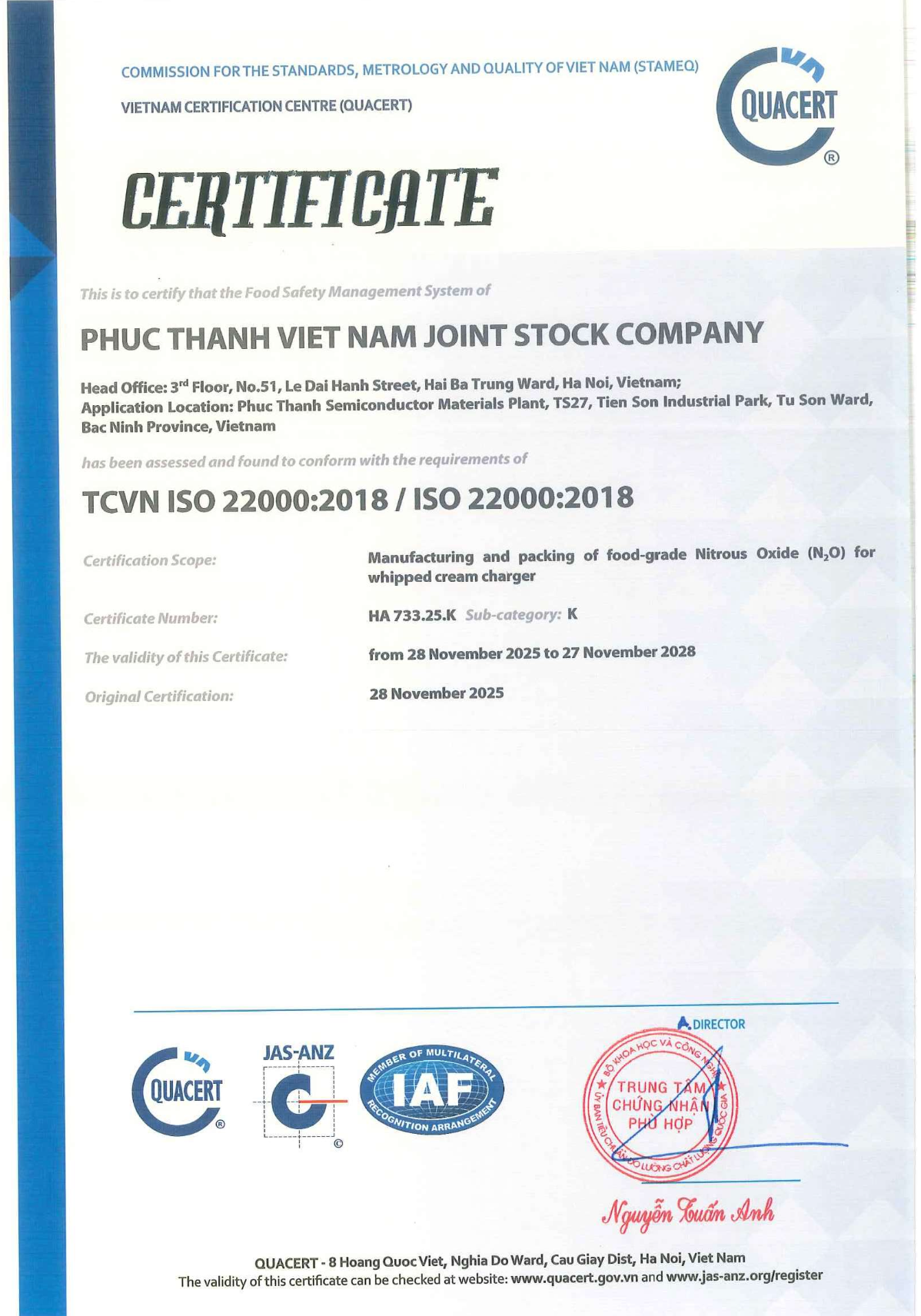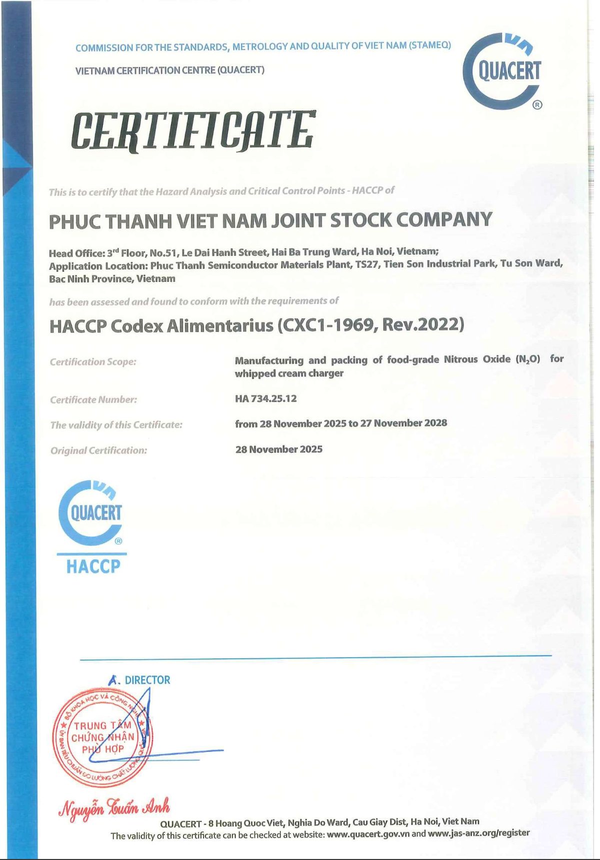 Với mục tiêu theo đuổi chất lượng lý tưởng và nghiên cứu phát triển chuyên sâu, trở thành nhà sản xuất chuyên biệt N2O chất lượng cao, Phúc Thành đã trở thành công ty đầu tiên tại Việt Nam sản xuất hàng loạt thành công khí N2O tinh khiết.